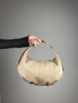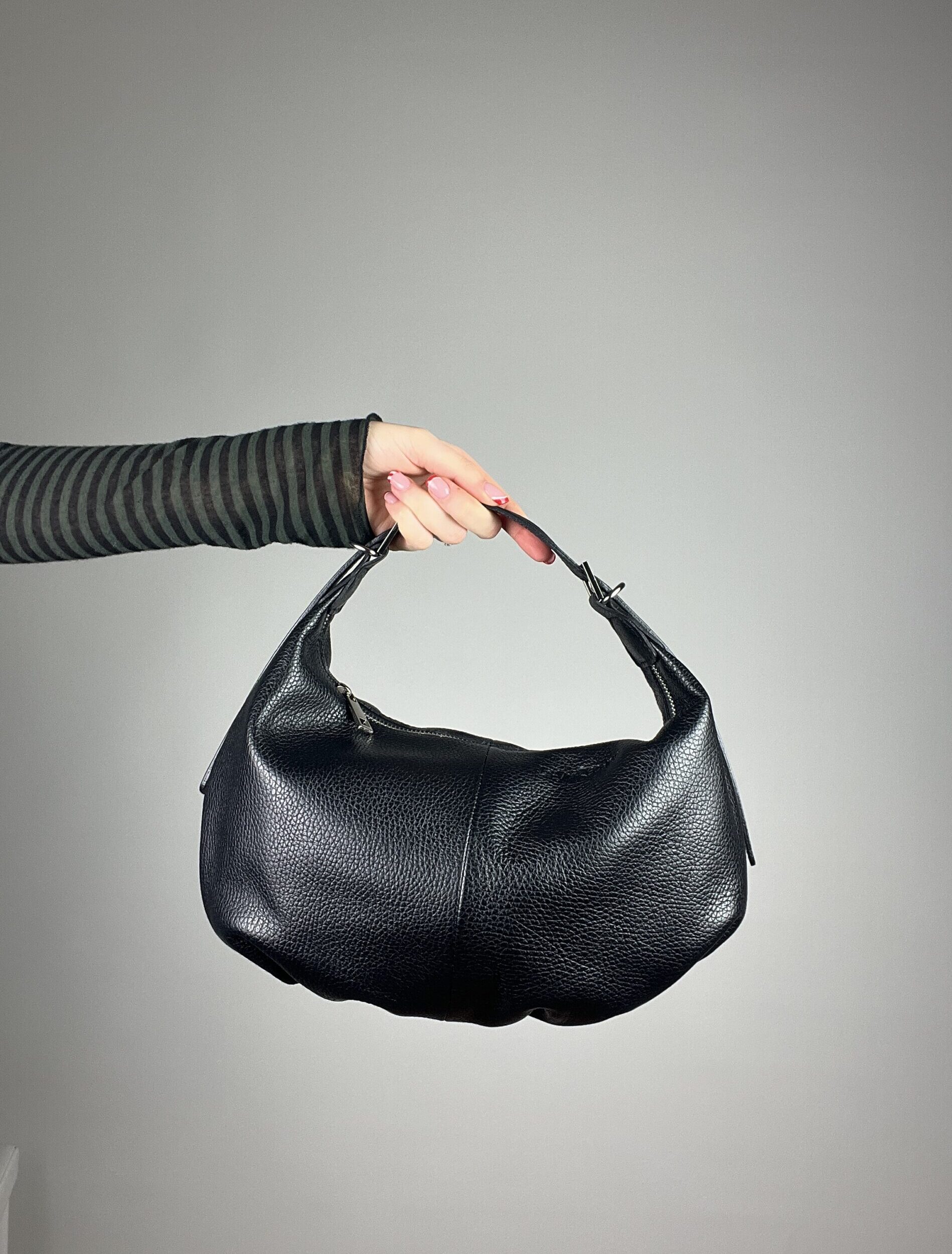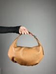 Borsa La Viareggina in vera pelle martellata. Forma a mezza luna, con manico regolabile con due fibbie. Tracolla in pelle, anche lei regolabile. Un vero gioellino. Misure 34x19x10